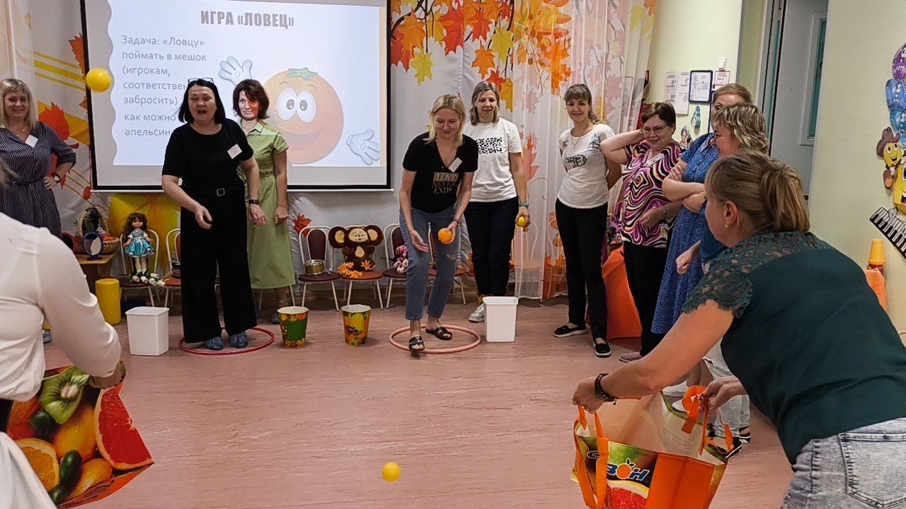 Педагоги с детским задором и непосредственностью выполняли такие командные упражнения, как «Пойми меня», «Повтори движение», «Сэлфи», а игры «Лабиринт», «Поймай апельсин», наглядно показали, что слаженная работа в команде, взаимовыручка и поддержка помогут нашему коллективу эффективно работать и в дальнейшем. Благодаря активности участников цель Апельсинового тренинга – командообразование, сплочение, гармонизация взаимоотношений в коллективе, профилактика синдрома эмоционального выгорания – была достигнута!