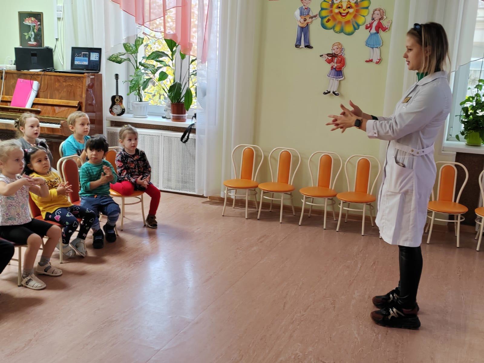 - медицинская сестра Лариса Васильевна рассказала об особенностях здоровья детей, мерах предосторожности для поддержания их физического и психического благополучия, а также о правилах гигиены, карантинных мероприятиях и осмотре детей перед посещением сада или прививками.