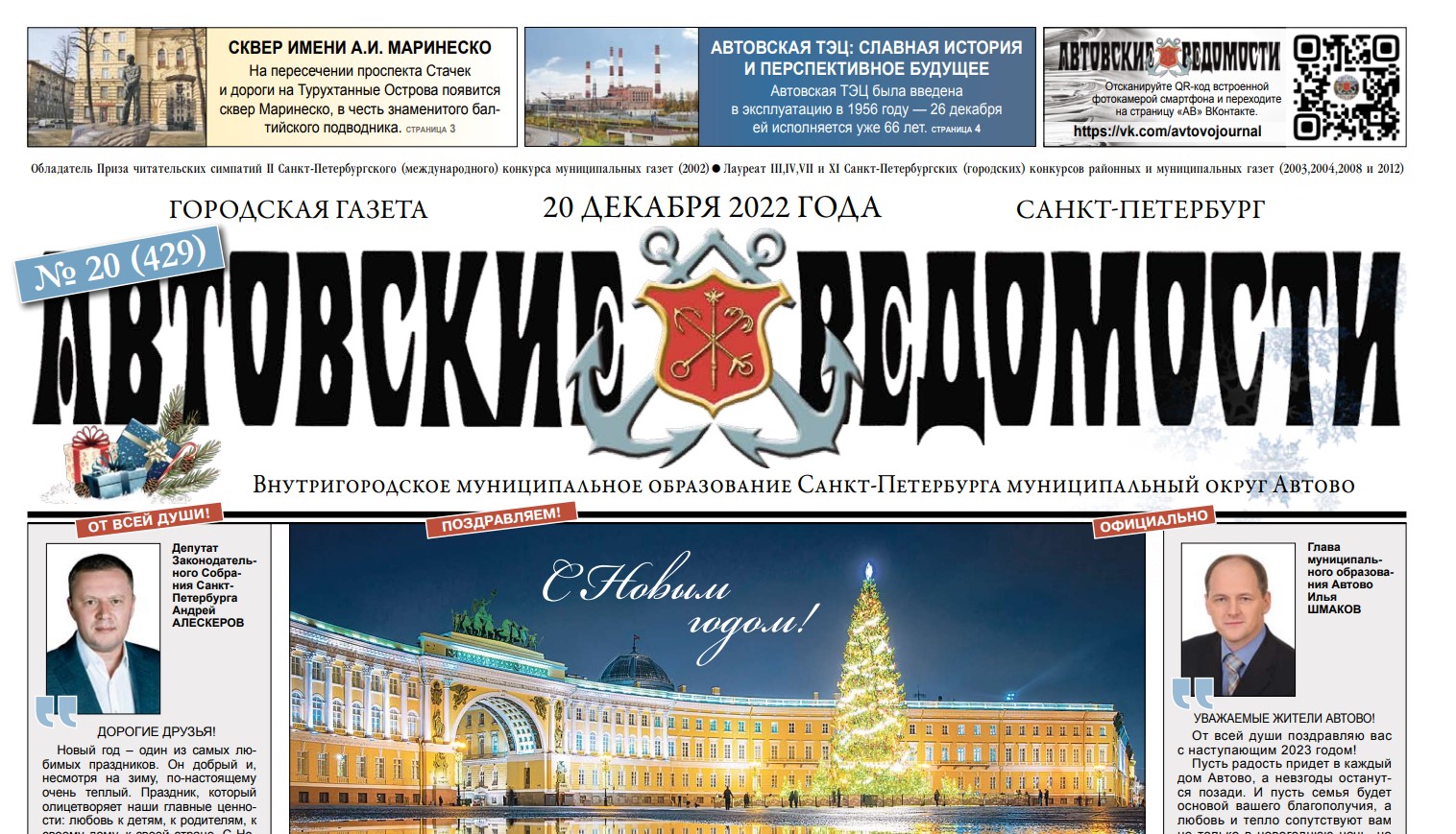 В газете МО Автово «Автовские ведомости» от 20 декабря 2022 года опубликована статья про наш детский сад «Одна большая семья»