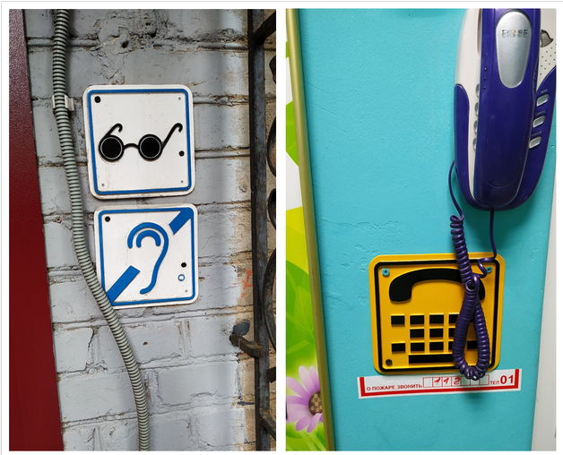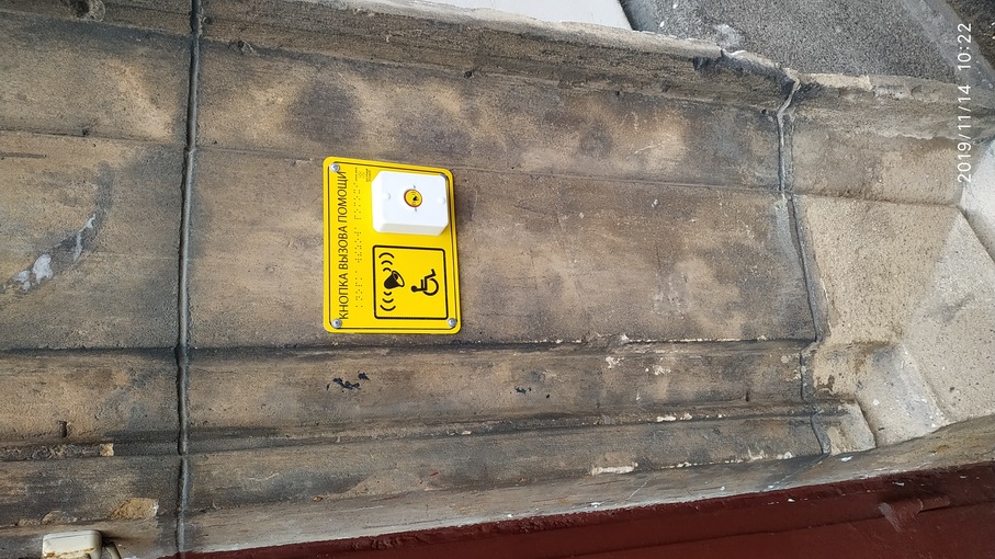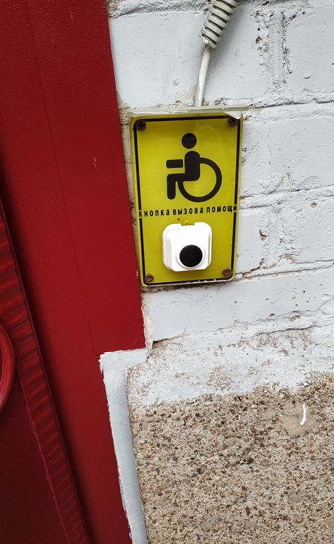 Также кнопка вызова сотрудника учреждения для оказания помощи инвалидам или лицу с ОВЗ распложена справа от входной двери запасного выхода с улицы дорога на Турухтанные острова.